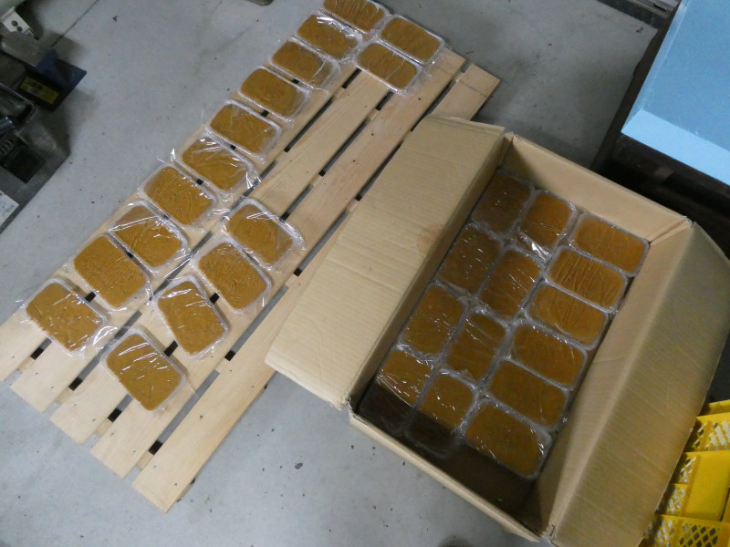 なので今日は1年貯めていた蜜蓋を処理した。俗に言う蜜蝋という奴だけど、売り物にするにはこの後もう1~2度濾す必要があるけどやろうと思うだけで実際には面倒になってやった事無い。
