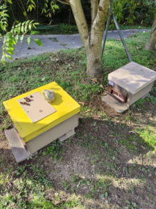 給餌器は分割板としても使えるのでうちでは最盛期にも巣箱や継箱に入っていることが多いが、その為給餌器の中に無駄巣を作られるものもある。そしてなにより持ち手にはプロポリスがギッチリとついている。これらを溶かして綺麗にするにはお湯につけるしか手が無いんじゃないかと思う。
