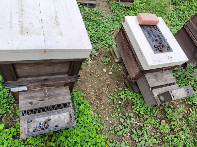 とは言え、蜂場の見回りは必須だ。一日に最低1回、できれば朝夕の2回やると確実だ。そうすることでオオスズメバチの被害を最小限にできる。オスが出てくるまでこういう生活が続いていく。