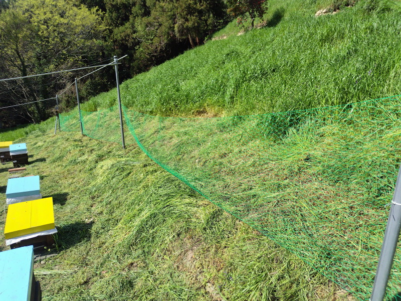 そしてあまり効果はどうかと思うけど、石積みの石が落ちてきても巣箱直撃しない様に網を張っておいた。