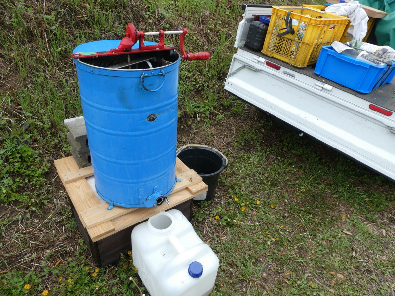 今朝は朝9時頃まで雨降っていたが止んでから掃除採蜜道具一式積み込んで出発。